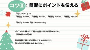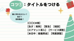 また、「報告なのか」「相談なのか」「確認なのか」、「急ぎかどうか」が分かるだけでも、対応がスムーズになります😊