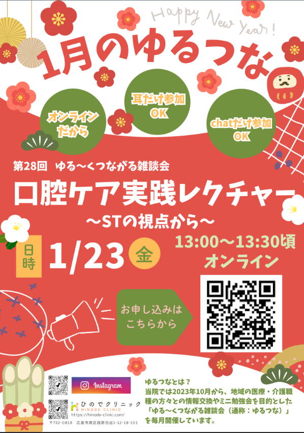 当院では2023年10月から、地域の医療・介護職種の方々との情報交換やミニ勉強会を目的とした「ゆる~くつながる雑談会(通称:ゆるつな)」を毎月開催しています。