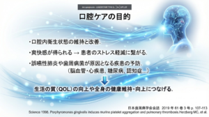誤嚥性肺炎や感染症の予防、食べる・話す機能の維持、QOLの向上など、