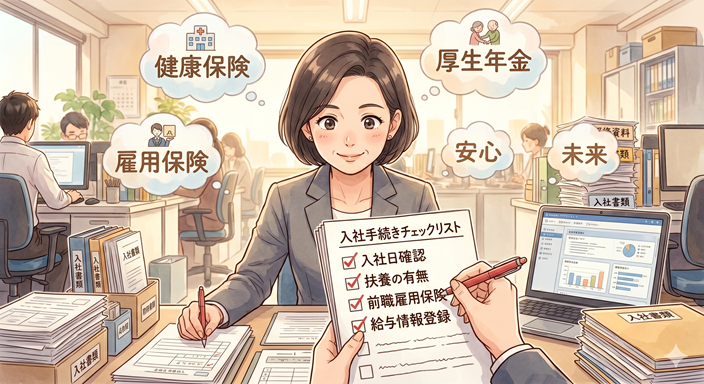 新しく職員が入職すると、労務担当はさまざまな手続きを行っています。